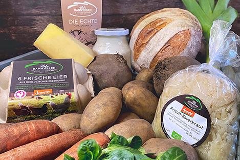 Probieren Sie die kleine Schnupperkiste mit Gemüse, Eiern vom Hof, Käse, Buttermilch und Joghurt aus der Hofkäserei, frischem Sauerkraut und einem leckeren Brot oder die große Schnupperkiste, die zusätzlich noch Wurstprodukte enthält.