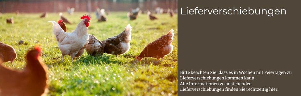 Und das aus gutem Grund, denn bei uns laufen sie das ganze Jahr tagsüber frei im Grünen herum, dürfen scharren und Wind und Wetter genießen. Das Ergebnis: Eier vom Feinsten - natürlich - lecker - frisch.