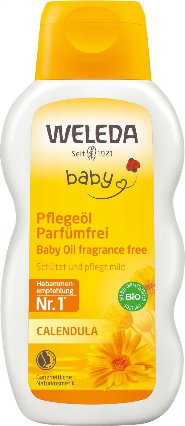 Das unparfümierte Weleda Calendula-Pflegeöl ist ideal für die tägliche Hautpflege und die milde Reinigung im Windelbereich. Es hilft mit einem Auszug aus kontrolliert-biologisch angebauter Calendula, Hautreizungen und Wundwerden vorzubeugen. Durch das enthaltene Sesamöl aus kontrolliert-biologischem Anbau wirkt das Calendula-Pflegeöl wohlig wärmend und ist daher auch sehr gut für die sanfte Babymassage geeignet. Dafür einfach eine kleine Menge Öl auf den Handflächen verteilen und mit kreisenden Bewegungen in die Haut einmassieren.