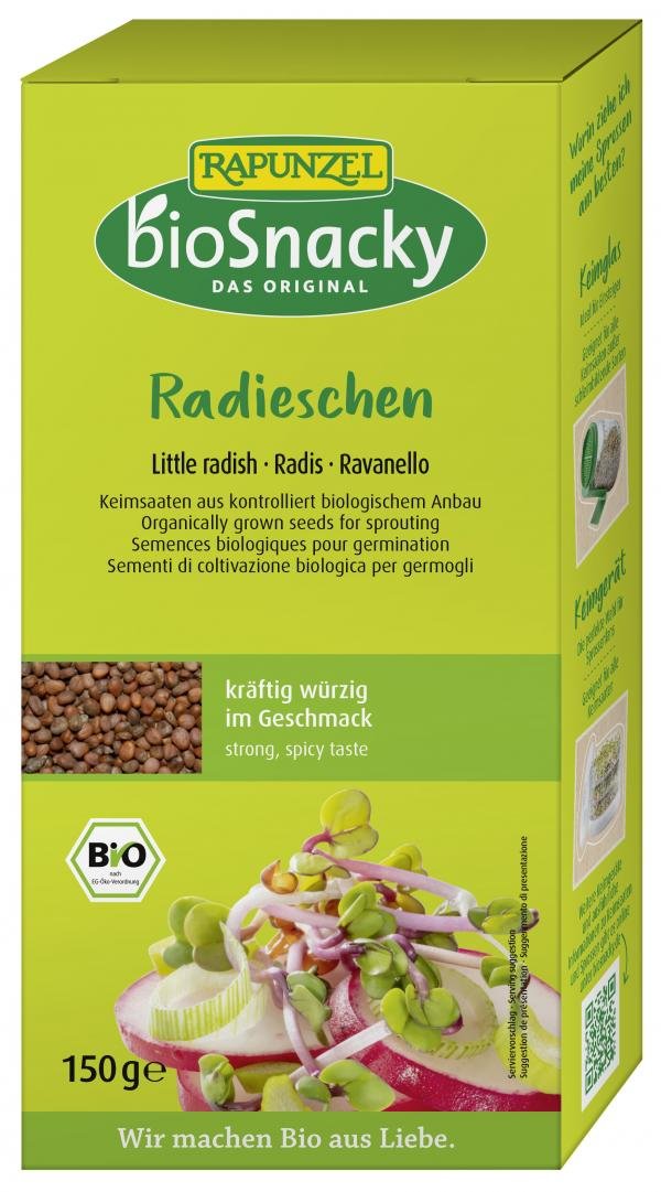 Radieschen-Sprossen sind kräfitg würzig im Geschmack. Die enthaltenen Senföle verleihen ihnen eine leichte Schärfe. Ideal als Topping für Salate, Brot, Pfannengerichte und Suppen sowie in Frischkäse und Dips. Sprossen sind die einfachste Methode, um zu jeder Jahreszeit wichtige Vitamine, Mineralstoffe, Spurenelemente, sekundäre Pflanzenstoffe und Ballaststoffe in die Ernährung zu bringen - und das ganz frisch geerntet und 'regional' von der heimischen Fensterbank!