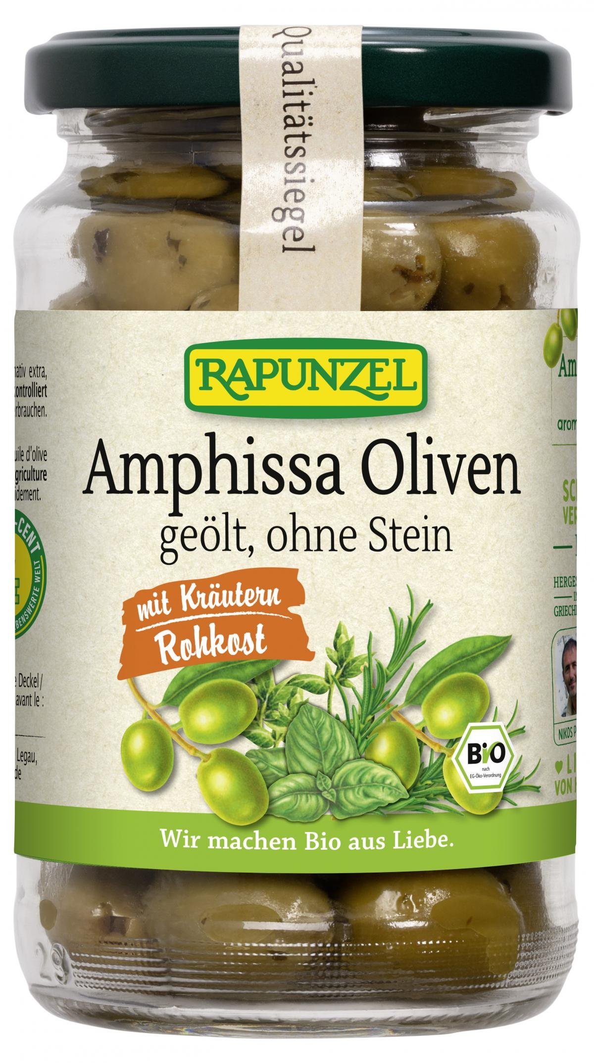 Das feste, saftige Fruchtfleisch, das aromatisch-fruchtige Aroma und die große runde Form zeichnen die grünen Oliven der Sorte ''Amphissa'' aus. Sie werden von kleinen Familienbetrieben in der Region zwischen dem Golf von Korinth und der Ägäis in Griechenland angebaut und von Hand geerntet. Da die Verarbeitung besonders schonend und ohne Erhitzen erfolgt, behalten sie die hochwertige Rohkostqualität. Die Oliven sind entsteint und werden weder in Lake noch in Öl eingelegt - lediglich eine leichte Marinade aus bestem Olivenöl nativ extra und mediterranen Kräutern rundet den Eigengeschmack der Amphissa Oliven perfekt ab.