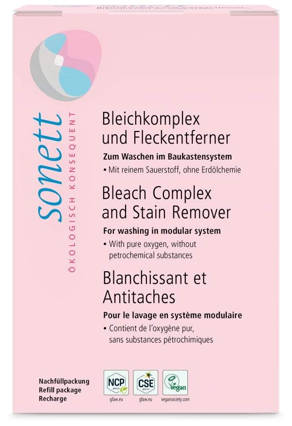 Da wir keine petrochemischen Bleichaktivatoren benutzen, ist der Sonett Bleichkomplex und Fleckentferner in der Waschmaschine erst ab 50 °C wirksam. Kann das Bleichmittel länger einwirken, z. B. durch Einweichen über Nacht, wirkt es bereits ab 30 °C.