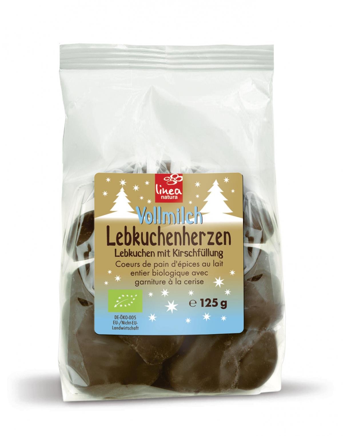Kirschkonfitüre* 30% (Rohrohrzucker*, Sauerkirschen*, Geliermittel: Apfelpektin, Säuerungsmittel: Zitronensäure) VOLLMILCHschokolade* 30% (Rohrohrzucker*, Kakaobutter*, VOLLMILCHpulver*, Kakaomasse*, Vanilleextrakt*), WEIZENmehl*, Rohrohrzucker*, DINKELmehl*, Palmfett*, Backtriebmittel (Amoniumhydrogenkarbonat; Kaliumkarbonat), Karamellzuckersirup*, Säuerungsmittel (Zitronensäure, Weinsäure), Gewürze*