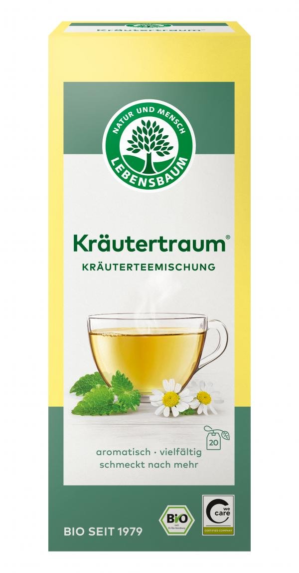 Feine Kräuter vereinen traumhaft ihre Geschmacksnoten in dieser ausgewogen-würzigen Mischung, die nicht umsonst Kräutertraum® heißt. Dieser Tee enthält das Beste aus den Kräutergärten der Welt und lädt dazu ein, sich einen Moment zurückzulehenen und zu genießen. Gönnen Sie sich eine kleinen Tagtraum oder lassen Sie sich in den Abend begleiten.