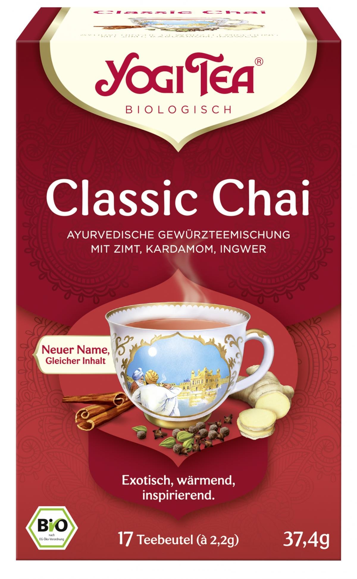 Der Gewürz-Tee Yogi Tea® Classic Bio ist eine wunderbare Mischung aus süßem Zimt, Kardamom, würzigem Ingwer, Nelken und Pfeffer und inspirierte Generationen von Yogis sowie die Marke YOGI TEA® und legte den Grundstein für die Vielfalt unserer ayurvedischen Teemischungen. Am besten gesüßt und mit Milch oder einer veganen Milchvariante genießen.