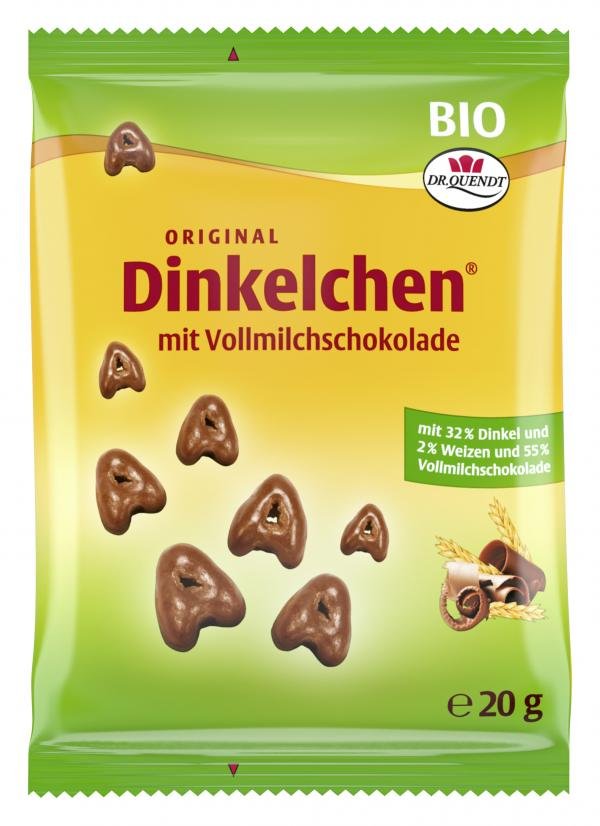 Bio Dinkelchen sind zart-knusprige Buchstaben - A’s - mit einem Knusperkern aus Bio-Russisch-Brot, Bio-Dinkelmehl und Bio-Dinkelkleie; umhüllt von einer zart-feinen Schicht aus Bio-Vollmilchschokolade.