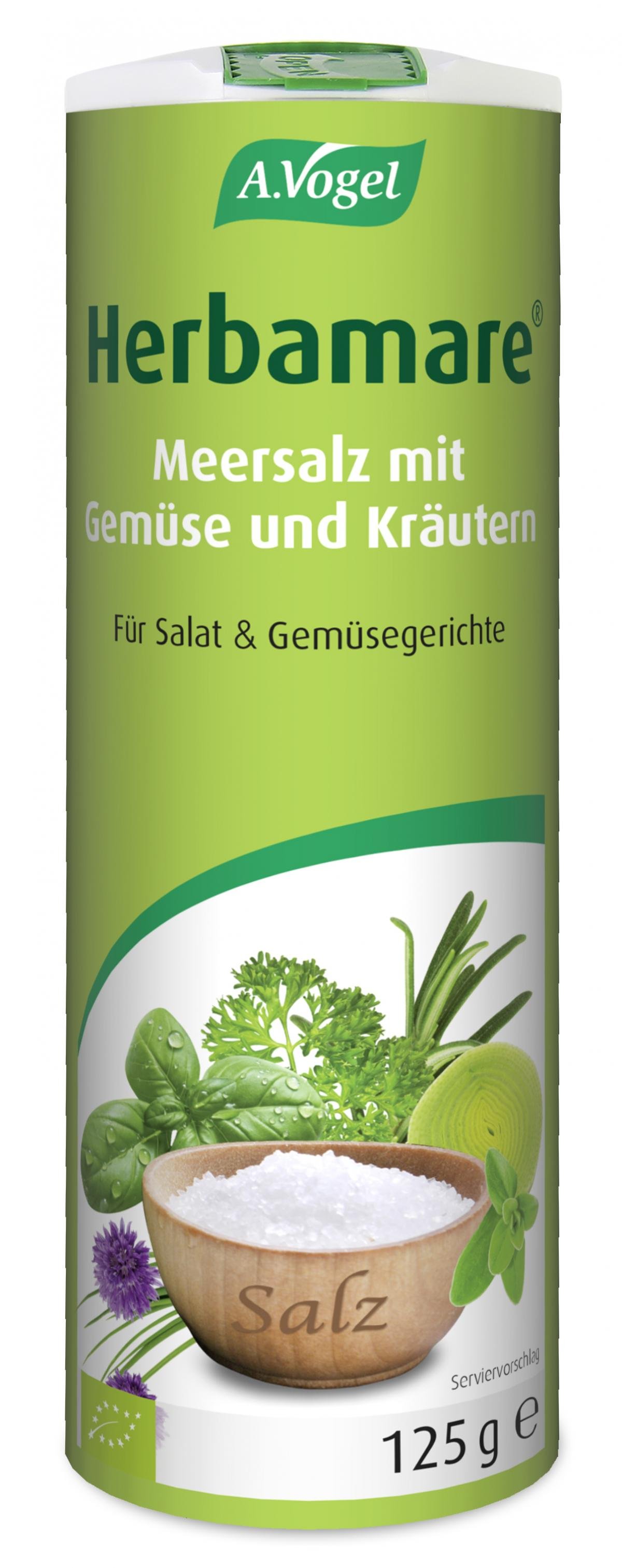 Herbamare® für Salat & Gemüsegerichte ist eine Mischung aus naturreinem Meersalz, 12 erntefrischen Gemüse- und Kräutersorten und der Meeresalge Kelp.