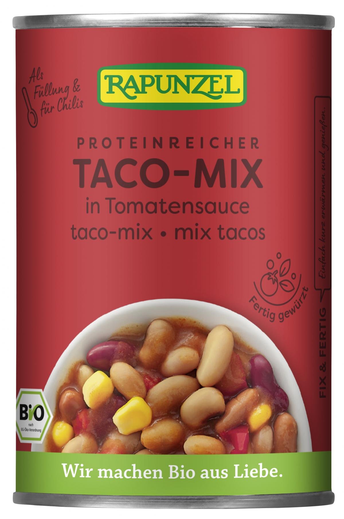Mix aus fünf aromatischen Bohnensorten, Paprika und Mais in fein würziger Tomatensauce - fix & fertig zubereitet. Die perfekte Mischung für mexikanische Gerichte. Einfach nur erwärmen und genießen! Für die schnelle Bio-Küche.