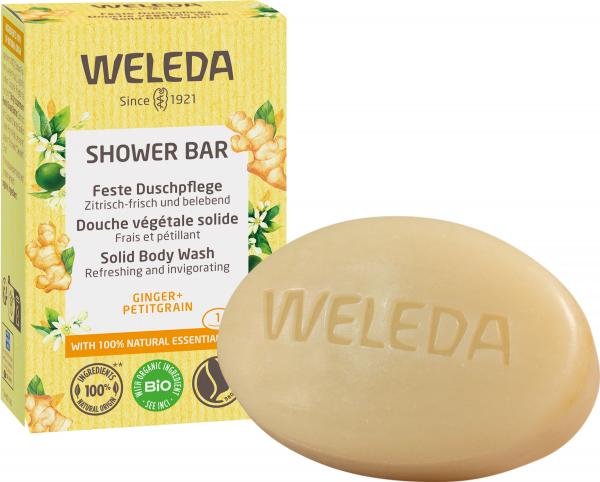 Die Weleda Feste Duschpflege verspricht natürliche Pflege, und zwar plastikfrei*. Mit natürlicher Grundseife aus pflanzlichen Ölen sowie wertvoller Bio-Sheabutter bietet sie eine zart-schaumige Reinigung. 100 % natürliche ätherische Öle und Pflanzenextrakte sorgen für ihre jeweiligen charakteristischen Duftnoten. Zitrisch-frischer, würziger Duft von 100 % natürlichen ätherischen Ölen und Pflanzenextrakten wie Ingwer und Petitgrain.