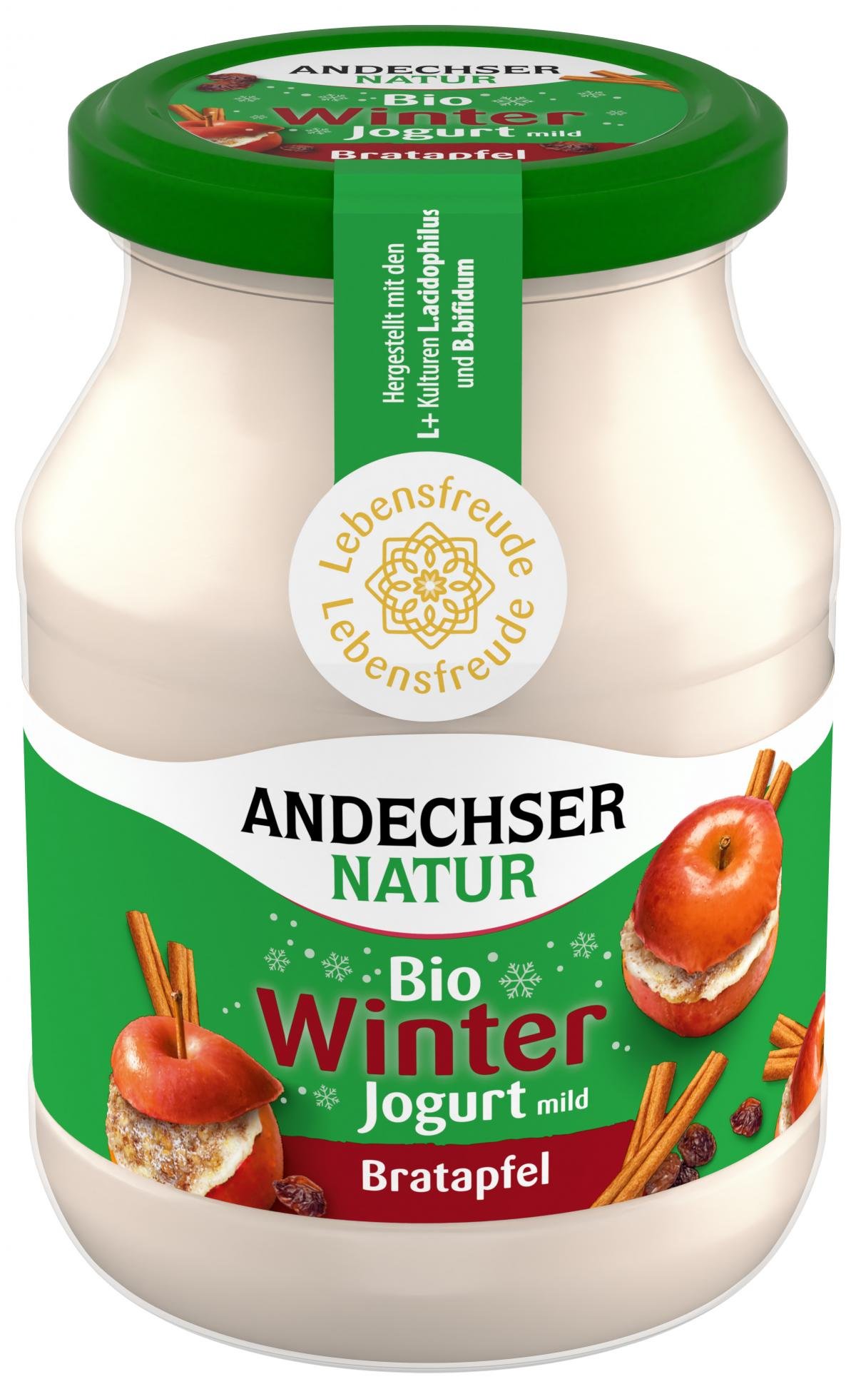 JOGURT MILD*, Rohrohrzucker*, 6% Äpfel*, 2% Apfelsaft* aus Apfelsaftkonzentrat*, 1% Rosinen*, Verdickungsmittel: Johannisbrotkernmehl* und Pektin, Zimt*, Zitronensaftkonzentrat*, extrahiertes Bourbon-Vanillepulver*.