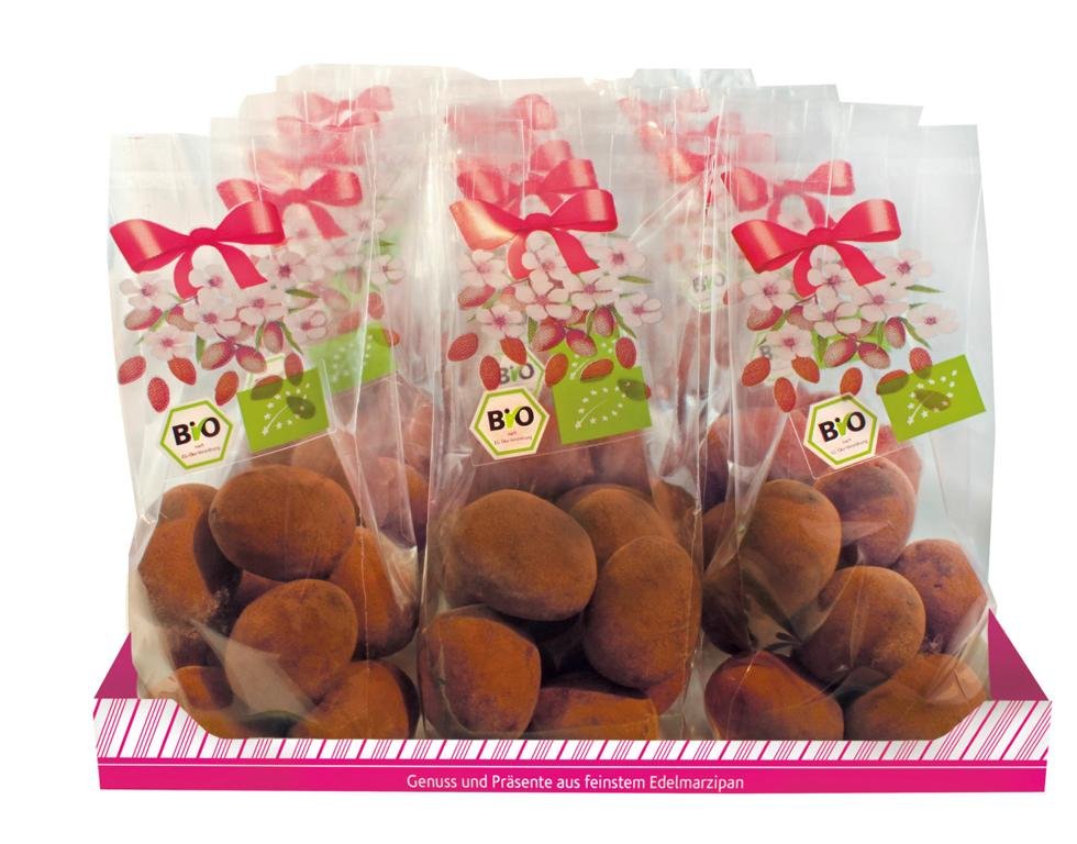 Wir benutzen für unser Sortiment, das aus über 1.200 Figuren und Produkten besteht, ausschließlich die Qualitätsstufen Edelmarzipan bis hin zu Gütemarzipan (90:10). Dies macht sich in einem sehr aromatischen und abgerundeten Geschmack bemerkbar: Der Geschmack der hochwertigen Mandeln steht gegenüber dem Zucker hier deutlich im Vordergrund.