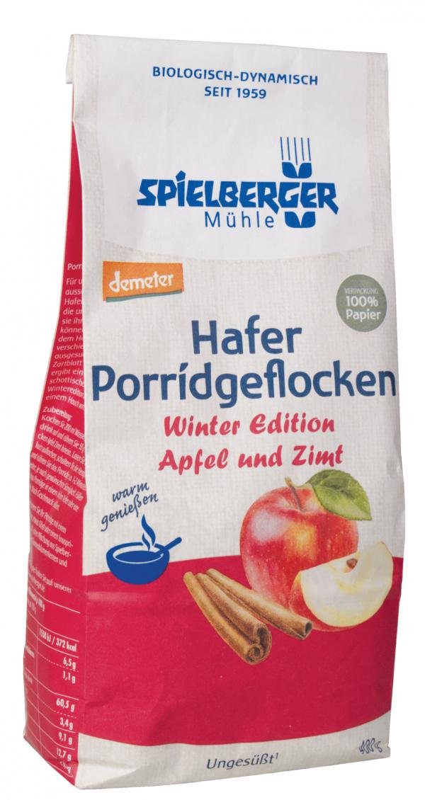 200 ml Wasser, Milch oder Pflanzendrink zum Kochen bringen. 65 g (4 EL) Hafer Porridgeflocken Winter Apfel/Zimt einrühren. Die Herdplatte ausschalten und das Porridge etwa 1 Minute unter Rühren auf der noch warmen Platte weiterziehen lassen. Anschließend in einen tiefen Teller oder eine Schale füllen. Nach Belieben süßen.