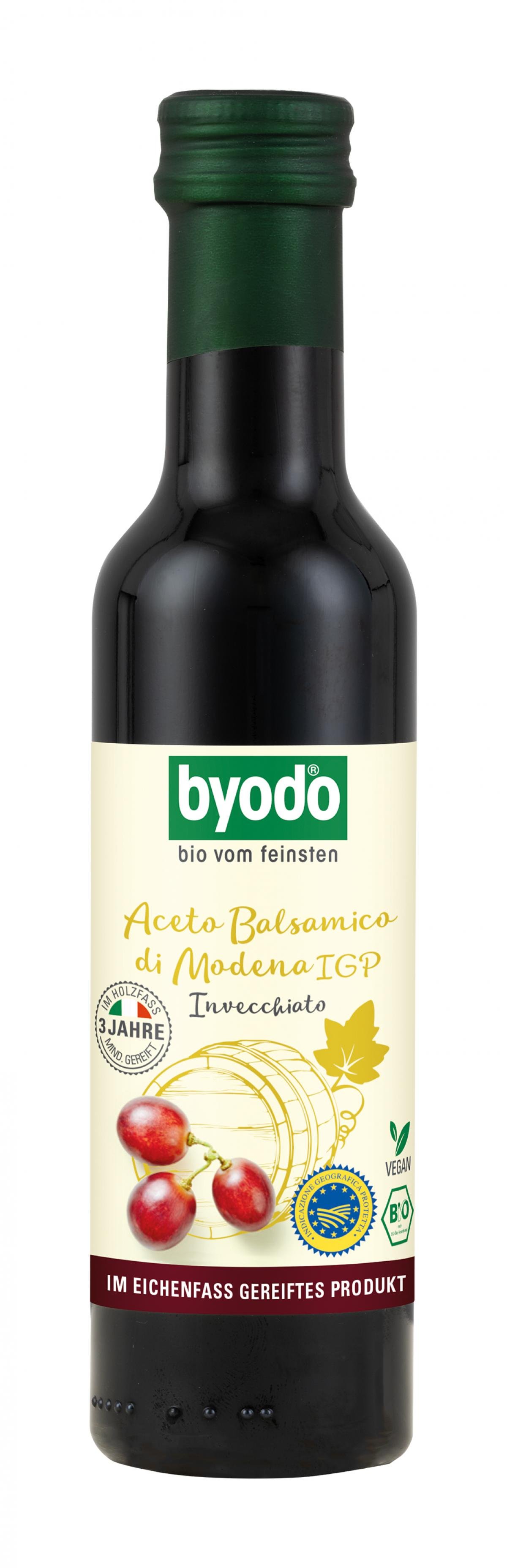 Der hohe Anteil an wertvollem fruchtigen Bio-Traubenmost, kombiniert mit biologischem Rotweinessig und der Lagerung in Holzfässern aus der Weinproduktion machen den Byodo Invecchiato unvergleichlich köstlich.